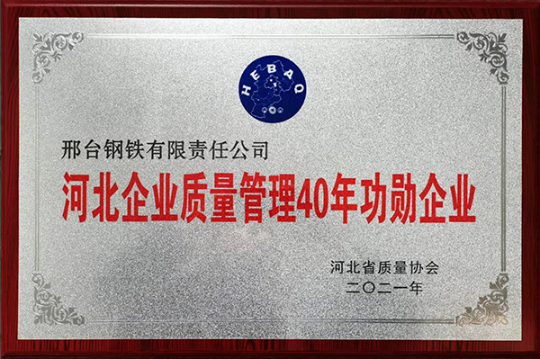2022年7月,河北省質(zhì)量協(xié)會(huì)公布了“河北企業(yè)質(zhì)量管理40年功勛企業(yè)名單”,邢臺(tái)鋼鐵有限責(zé)任公司榮獲“功勛企業(yè)”榮譽(yù)稱號(hào)。