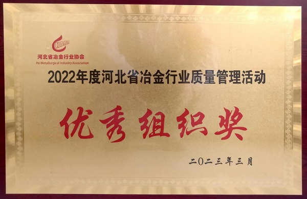 邢鋼榮獲“2022年度河北省冶金行業(yè)質(zhì)量管理活動(dòng)優(yōu)秀組織獎(jiǎng)”