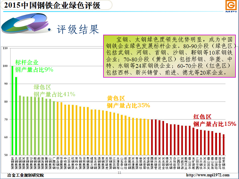 日前,冶金工業(yè)規(guī)劃研究院、環(huán)境保護(hù)部環(huán)境工程評估中心聯(lián)合公布2015年中國鋼鐵企業(yè)綠色評級結(jié)果,邢臺鋼鐵有限責(zé)任公司位列第13名。