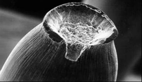 中心毛刺的斷口一般呈杯狀或者錐狀。主要是因?yàn)殇摻z拉拔過程中表面和內(nèi)部受力不均導(dǎo)致。