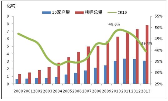 產(chǎn)業(yè)集中度過(guò)低,首先會(huì)加劇企業(yè)間的無(wú)序競(jìng)爭(zhēng),減弱了企業(yè)在價(jià)格上的談判能力,導(dǎo)致盈利能力減弱;其次,會(huì)拉低中國(guó)鋼材的整體品質(zhì)和檔次,一旦產(chǎn)業(yè)集中度提高了,企業(yè)會(huì)有更多的精力和資金來(lái)升級(jí)加工裝備,研究出品質(zhì)更好的鋼材,提高中國(guó)在國(guó)際貿(mào)易中的競(jìng)爭(zhēng)力;第三,生產(chǎn)的過(guò)度分散會(huì)造成資源的極大浪費(fèi),帶來(lái)更多的環(huán)境污染,進(jìn)一步降低中國(guó)的產(chǎn)能利用能力。所以為了鋼鐵行業(yè)的健康發(fā)展,我們必須要進(jìn)行產(chǎn)業(yè)結(jié)構(gòu)的整合,鋼鐵企業(yè)重組勢(shì)在必行。