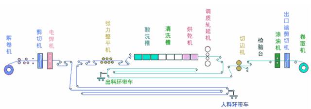 連續(xù)式酸洗是一種高產(chǎn)優(yōu)質(zhì),發(fā)展較快的酸洗方法,它是通過(guò)在機(jī)組上設(shè)置焊機(jī)和活套裝置,使工藝段在換卷時(shí)不停機(jī),保證機(jī)組連續(xù)運(yùn)行,但機(jī)組長(zhǎng),設(shè)備復(fù)雜,投資較高。連續(xù)式酸洗線主要有兩種形式,分別是連續(xù)臥式酸洗機(jī)組和連續(xù)塔式酸洗機(jī)組。