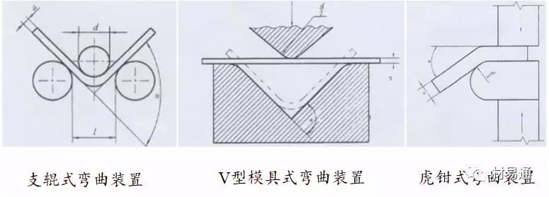 彎曲試驗通常在萬能材料試驗機或壓力機上進行;常用的彎曲裝置有支輥式、V型模具式、虎鉗式、板式等。