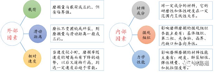 磨損按磨損機理可分為粘著磨損、磨粒磨損、疲勞磨損、腐蝕磨損、沖蝕磨損、微動磨損,按環(huán)境介質(zhì)可分為干磨損、濕磨損、流體磨損。