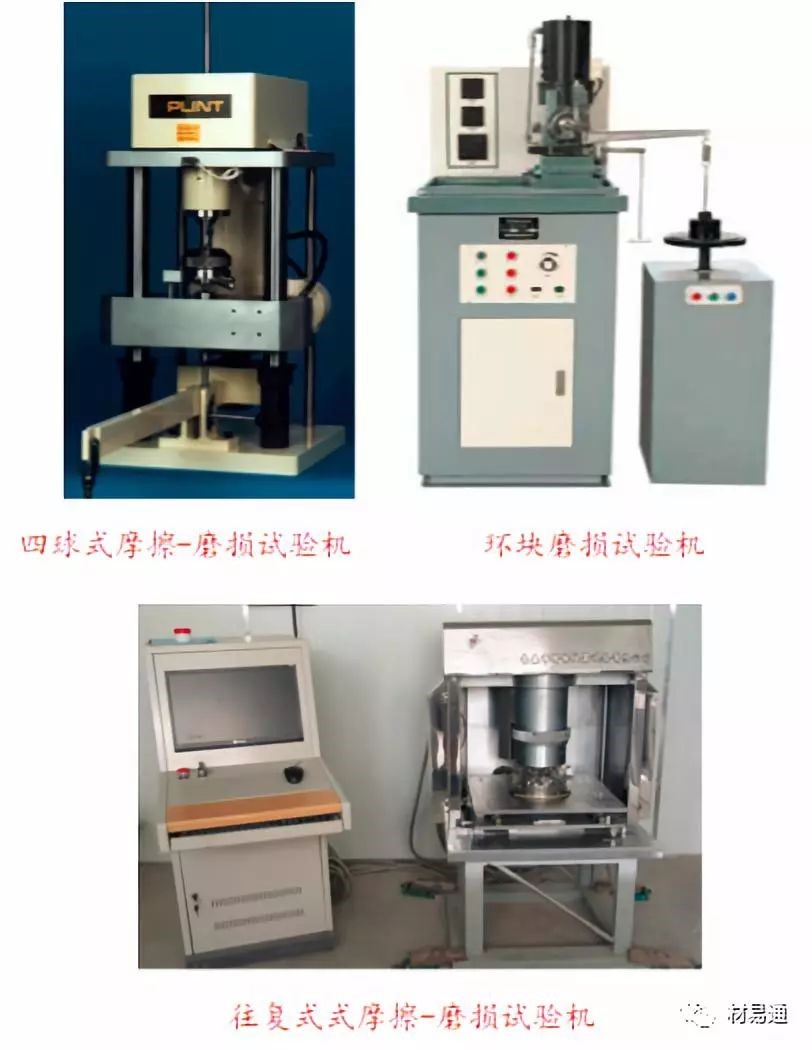 磨損試驗儀器:滾子式磨損試驗機、環(huán)塊磨損試驗機、旋轉(zhuǎn)圓盤一銷式磨損試驗機、往復(fù)式摩擦-磨損試驗機、四球式摩擦-磨損試驗機、接觸疲勞試驗機、濕磨科磨試驗機。