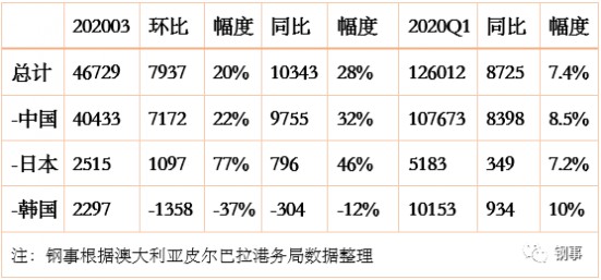 總的來看,澳大利亞的鐵礦石出口目前并未受到疫情的影響,并且在快速增加,今年前2個(gè)月,黑德蘭港的出口量同比減少了161.8萬噸,降幅為2%,而到3月底時(shí)實(shí)現(xiàn)了7.4%的同比正增長。另一方面,韓國自黑德蘭港進(jìn)口的鐵礦石占比較大,3月份數(shù)據(jù)的大幅下滑可能反映出其鋼鐵生產(chǎn)強(qiáng)度的下降,減少了對(duì)鐵礦石的需求。日本則還需要進(jìn)一步的數(shù)據(jù)來觀察和分析。今年前2個(gè)月,韓國粗鋼產(chǎn)量減少3.4%,鐵礦石進(jìn)口量增加了1.4%,日本粗鋼產(chǎn)量增加1.7%,礦石進(jìn)口量則減少了1.8%;總體變化都不大,3月份或許是個(gè)開始。(中國冶金報(bào))