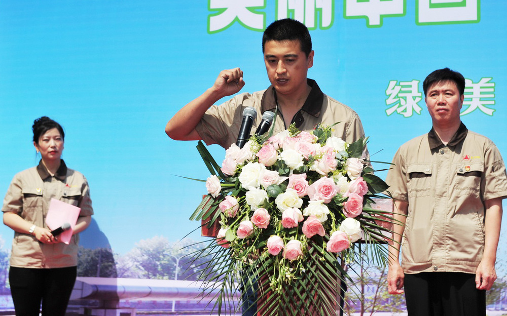 煉鐵廠職工侯浩然代表5000名職工宣誓,將積極參加車間、現(xiàn)場(chǎng)環(huán)境美化行動(dòng),用好污染防治設(shè)施,爭(zhēng)當(dāng)遵守環(huán)保政策法規(guī)的行動(dòng)者,為綠美邢鋼,為邢臺(tái)市“藍(lán)天保衛(wèi)戰(zhàn)”,做出自己的貢獻(xiàn)。