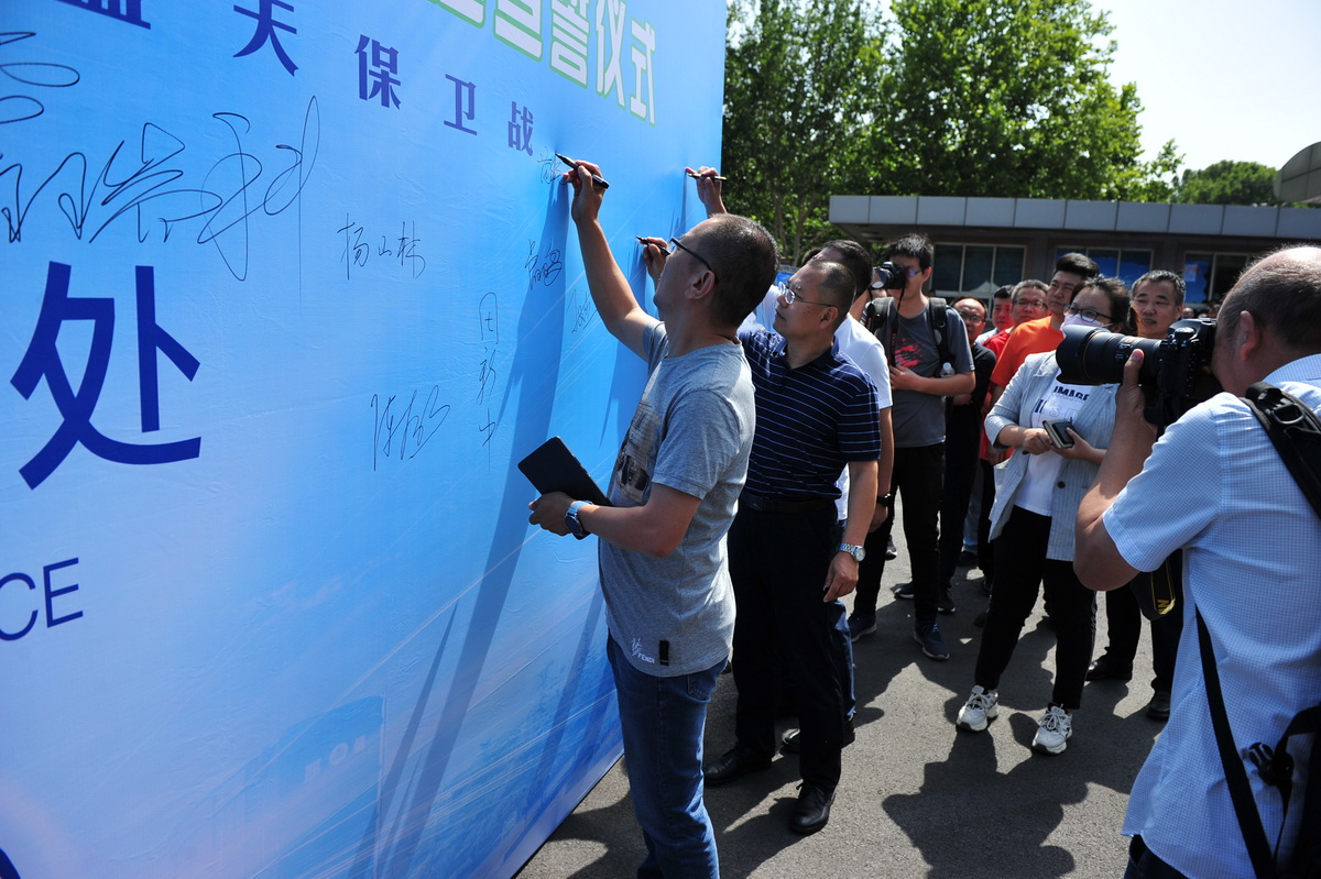 宣誓儀式上,還開(kāi)展了“美麗中國(guó) 我是行動(dòng)者”主題簽名活動(dòng),來(lái)賓和公司領(lǐng)導(dǎo)向環(huán)保宣傳車司機(jī)代表發(fā)放了車貼。