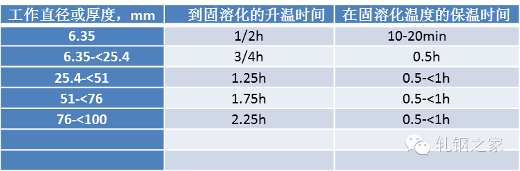 表 2:奧氏體不銹鋼固溶處理保溫時(shí)間