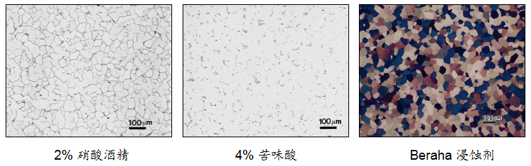 不同浸蝕劑的影響(低碳鋼板晶粒度)
