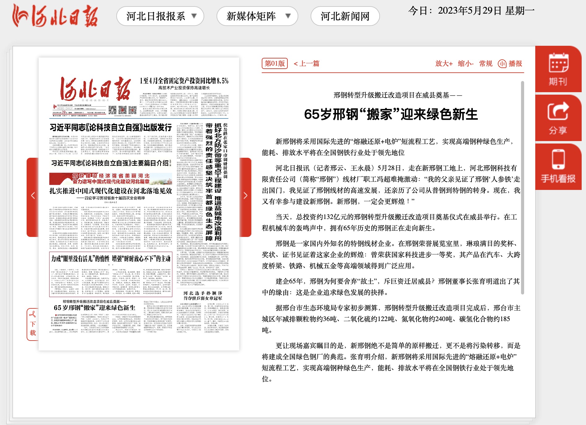 65歲邢鋼“搬家”迎來(lái)綠色新生