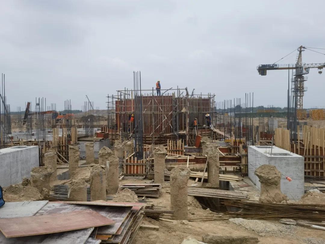 3217畝的施工現(xiàn)場一派繁忙,到處機車轟鳴、近10支隊伍1400余名建設(shè)者們更是群情高漲、干勁十足,保安全、抓質(zhì)量、搶進度、樹標桿、做精品。無論是項目部領(lǐng)導(dǎo)、相關(guān)技術(shù)人員還是現(xiàn)場負責人員、施工人員,大家夜以繼日、大干快上,持續(xù)掀起了“樹標桿、做精品”的新廠建設(shè)熱潮,為企業(yè)高質(zhì)量發(fā)展提供了強硬支撐。