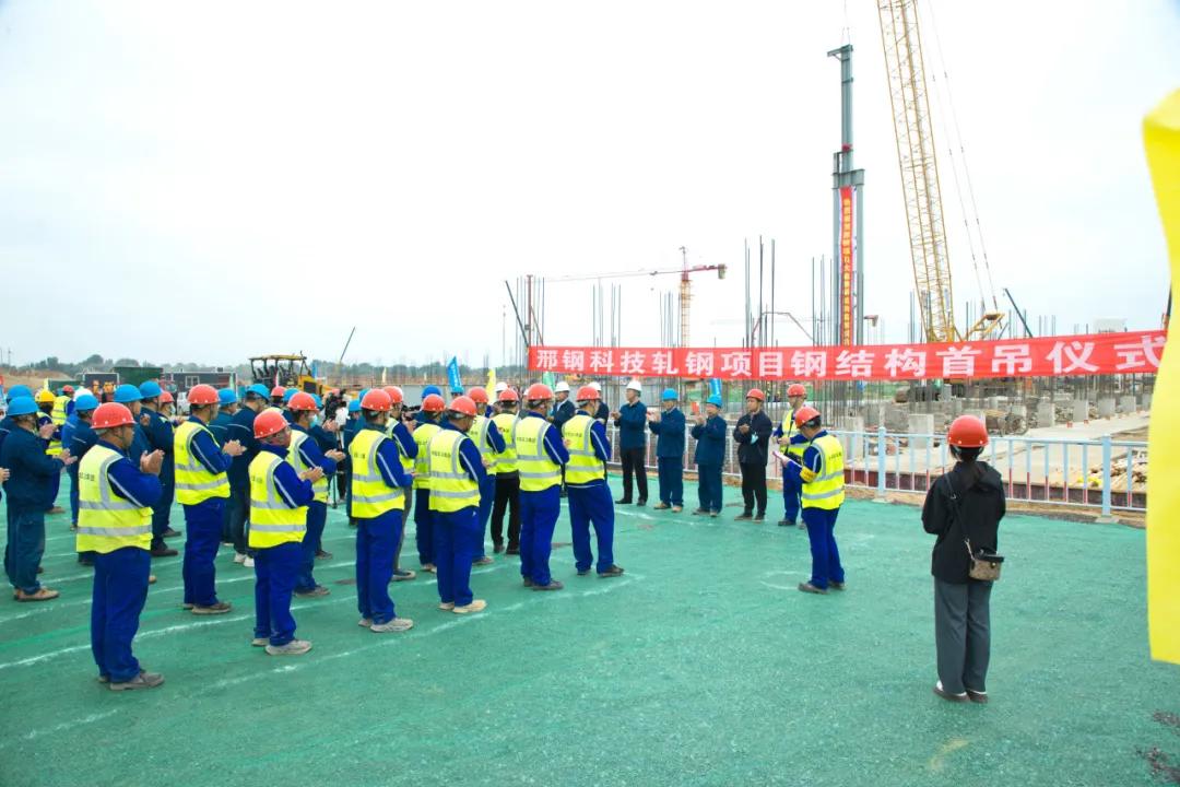 The construction of Xingtai Steel's relocation and transformation project, now in full acceleration, has delivered more good news. On the morning of May 20, 2024, the successful first hoisting of the large coil rolling mill's steel structure took place at a vibrant construction site adorned with colorful flags and high spirits. This achievement signifies that another critical phase of the project has entered the main steel construction stage. This landmark progress reinforces the steady advancement toward the goal of completing and commissioning the project as scheduled.